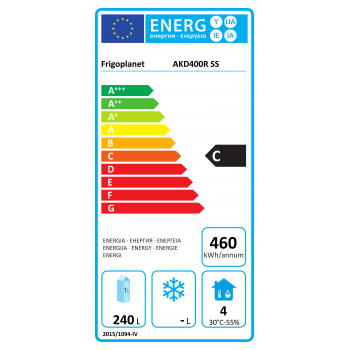 Vitrine réfrigérée statique numérique AKD400R en acier inoxydable avec porte pleine. Structure extérieure en acier inoxydable.
