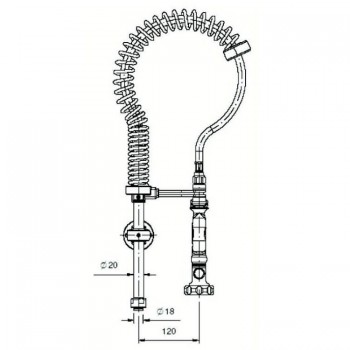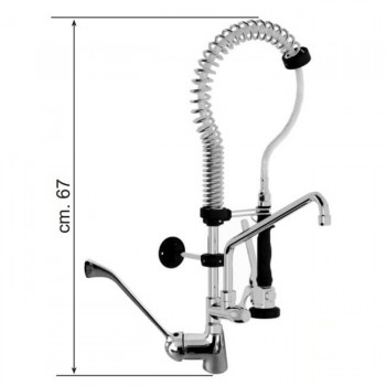 Ensemble de robinetterie professionnelle. Équipé d'un flexible, d'une douchette et d'un ressort spiralé flexible permettant de réguler la pression de l'eau. Le robinet, situé à mi-hauteur du flexible, facilite le lavage et rend le prérinçage du lave-vaisselle plus rapide et plus pratique. Idéal pour les cuisines professionnelles des cantines, laboratoires et petits restaurants : hauteur maximale : 67 cm.