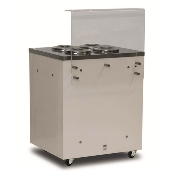 Banco gelateria a pozzetto ideale per l'esposizione di 4 gusti di gelato mantecato, dotato di riserva per 2 carapine.