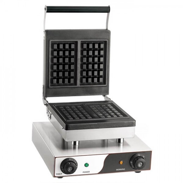 Piastra elettrica singola per Waffle 25 x 25 cm. Cucina 2 waffle di dimensioni 16,5 x 10 x 3,2 cm (formato tradizionale belga). Ideale per Bar.