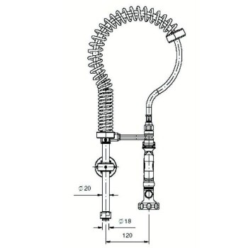 Gruppo doccia professionale dotato di monoforo ideale per prelavaggio lavastoviglie studiato per cucine professionali di ristoranti, bar, mense e laboratori. Il tubo flessibile e il pratico manico a spruzzo, che permette di regolare la pressione dell'acqua grazie alla molla flessibile di forma spirale. Facile da installare in cucine di varie dimensioni, anche nelle più piccole viste le sue misure ridotte: 65 cm massimi di altezza.