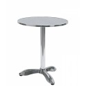 Tavolo rotondo con base in alluminio e piano in acciaio inox, ideale per arredamento esterno. Misure: Ø 60 x H73 cm